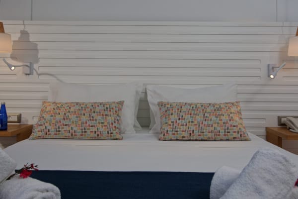 With size of 40-45 m2 all have large balconies-veranda with panoramic view of the Cretan Sea and the Venetian castle (Fortezza). Modern decorated with bright colours and excellent quality furniture, a double size or 2 single beds with anatomic hypoallergic matresses - Candia strom, bathroom with shower, hair dryer and all the amenities needed. Also a luxury separate living room with kitchenette and Media strom sofa for your relaxation.