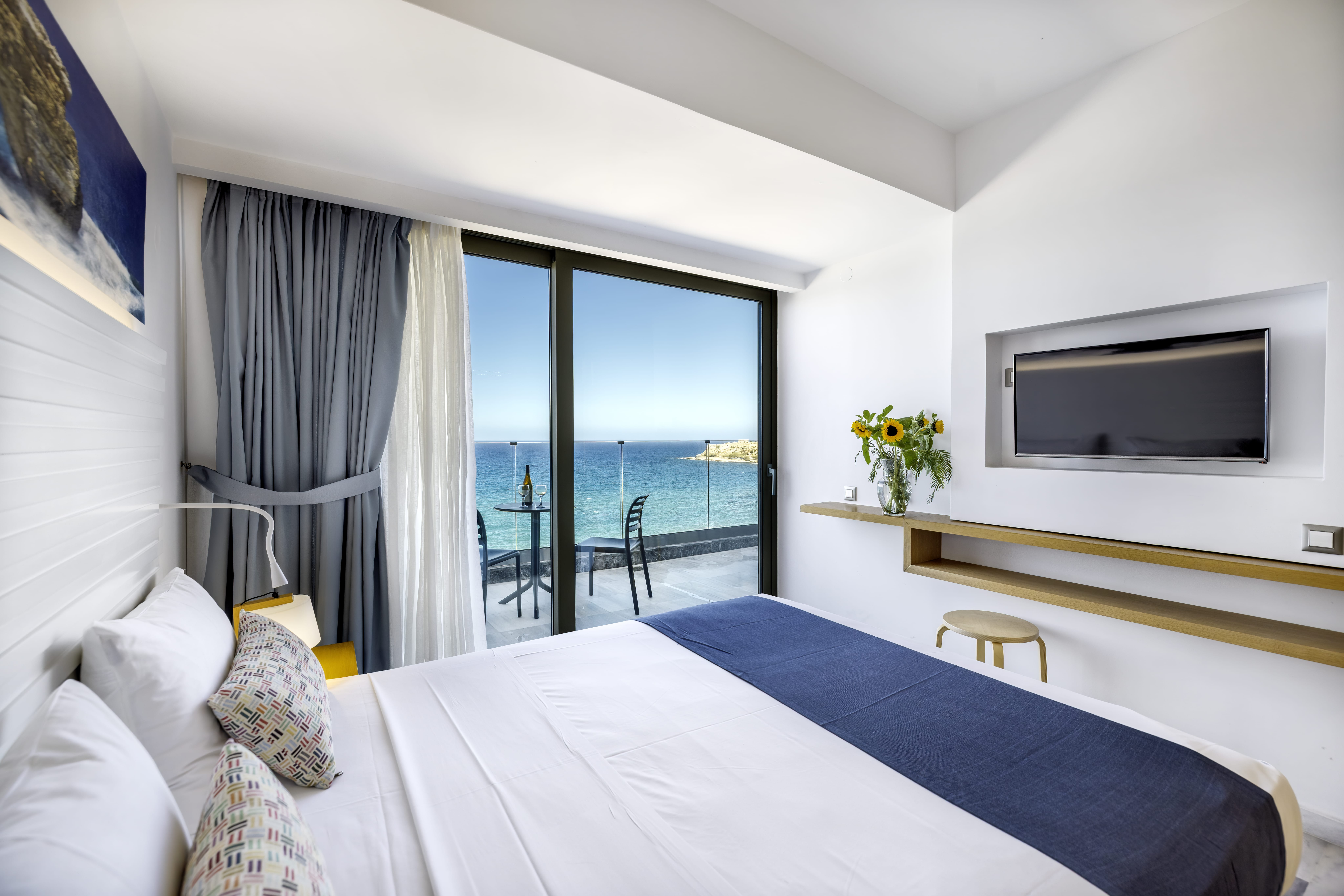 German Diese Kategorie umfasst den Großteil unserer Zimmer. Sie bieten einen Panoramablick auf das Kretische Meer und die venezianische Festung (Fortezza) sowie einen großen Balkon. Ihre Größe beträgt 20-30 m². Die Zimmer sind modern mit hellen Farben und hochwertigen Möbeln eingerichtet und verfügen über ein Kingsize-Bett oder zwei Einzelbetten mit anatomischen, hypoallergenen Matratzen von Candia Strom. Jedes Zimmer hat ein Badezimmer mit Dusche, Haartrockner und allen notwendigen Annehmlichkeiten.